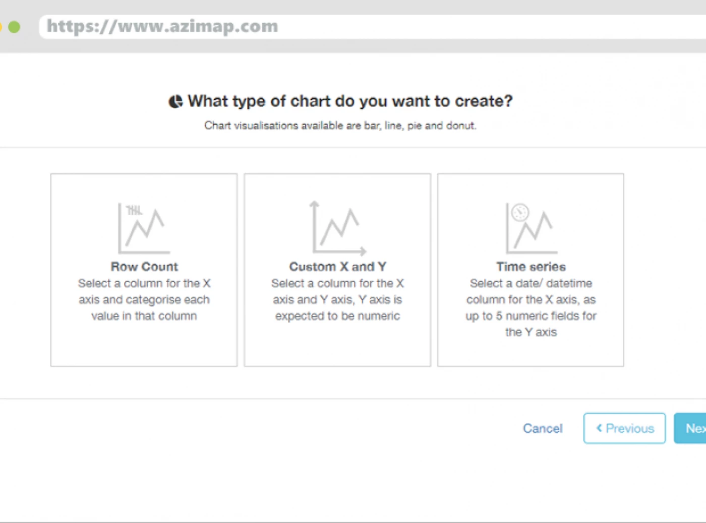 Create beautiful and insightful interactive charts directly from your data. Supporting bar, line, and pie charts, users can now create interactive charts that filter and zoom the data on the map. There are three different types of charts that can be created. These are Row Count - display a count or instance of a specific record in your data, Custom - create a custom chart based on your data, and Time Series - chart time-based data across different date and time ranges.